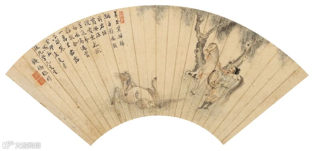 款识:青玉紫骝鞍,骄多影屡盘。荷君能剪拂,躞蹀喷桑干。踠足追奔易,长鸣遇赏难。摐金一万里,霜露不辞寒。癸卯孟夏月写为扶几学兄先生,铁桥张穆。