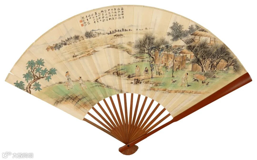 款识:篱曲村湾接比邻,稻华香里太平民。豆阴少长闲相聚,话说前朝事迹新。己卯秋日莲平先生雅命即希指正,吴青霞写于沪江。