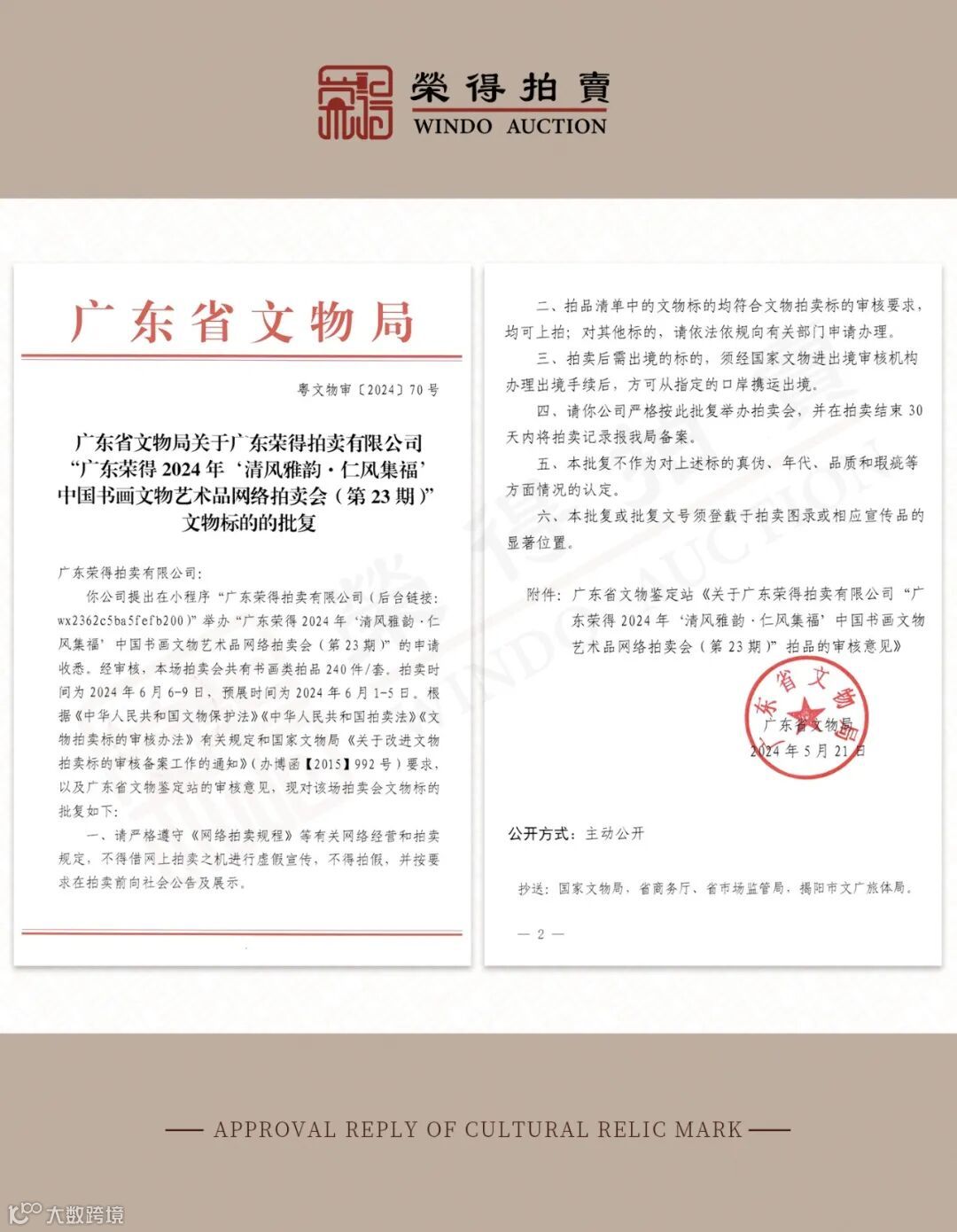 结拍时间:6月8日 早上09:30时间顺延(逐件结拍,时间间隔3分钟)