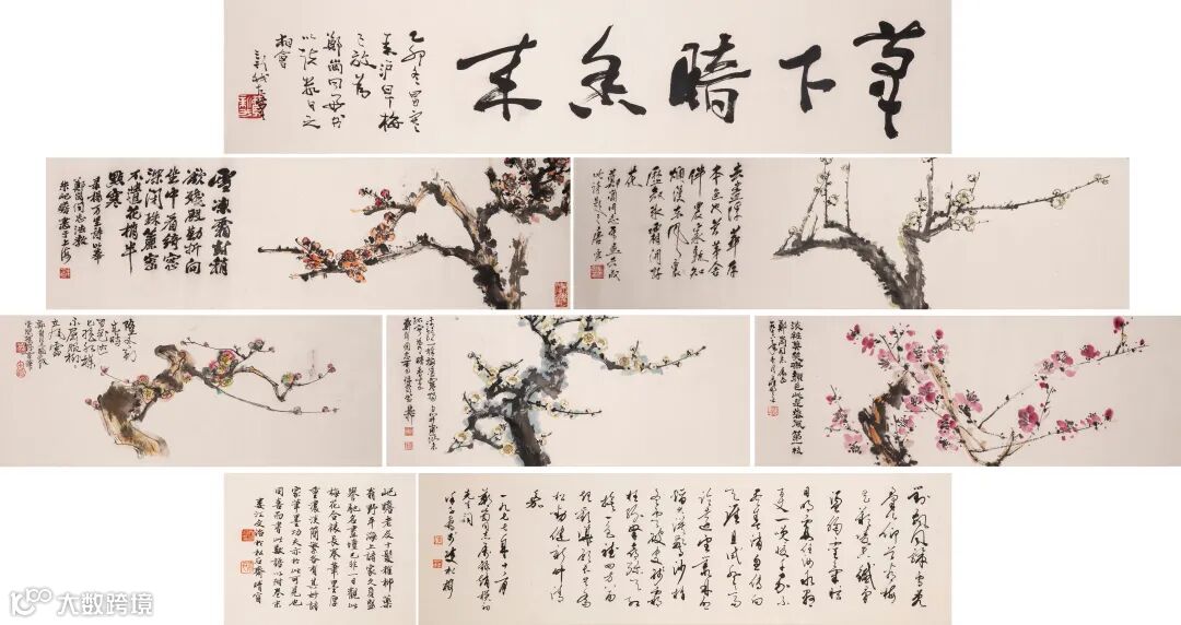 纸本 手卷 引首24×119cm;梅花图五帧24×363cm;徐子鹤、宋文治题跋24×128cm