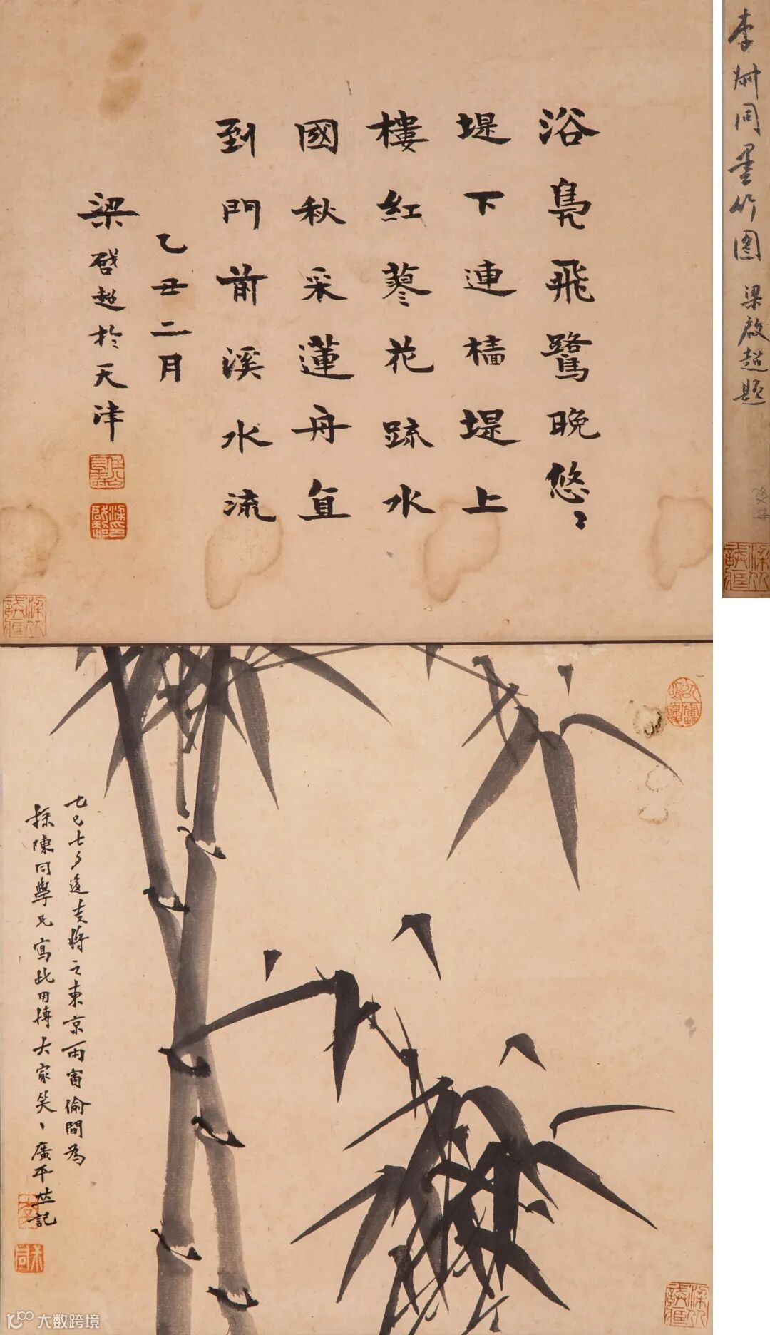 钤印:任公长寿(朱文)、梁启超印(白文)、梁从诫藏(朱文)、李(朱文)、叔同(白文)、以雷鸣夏(朱文)