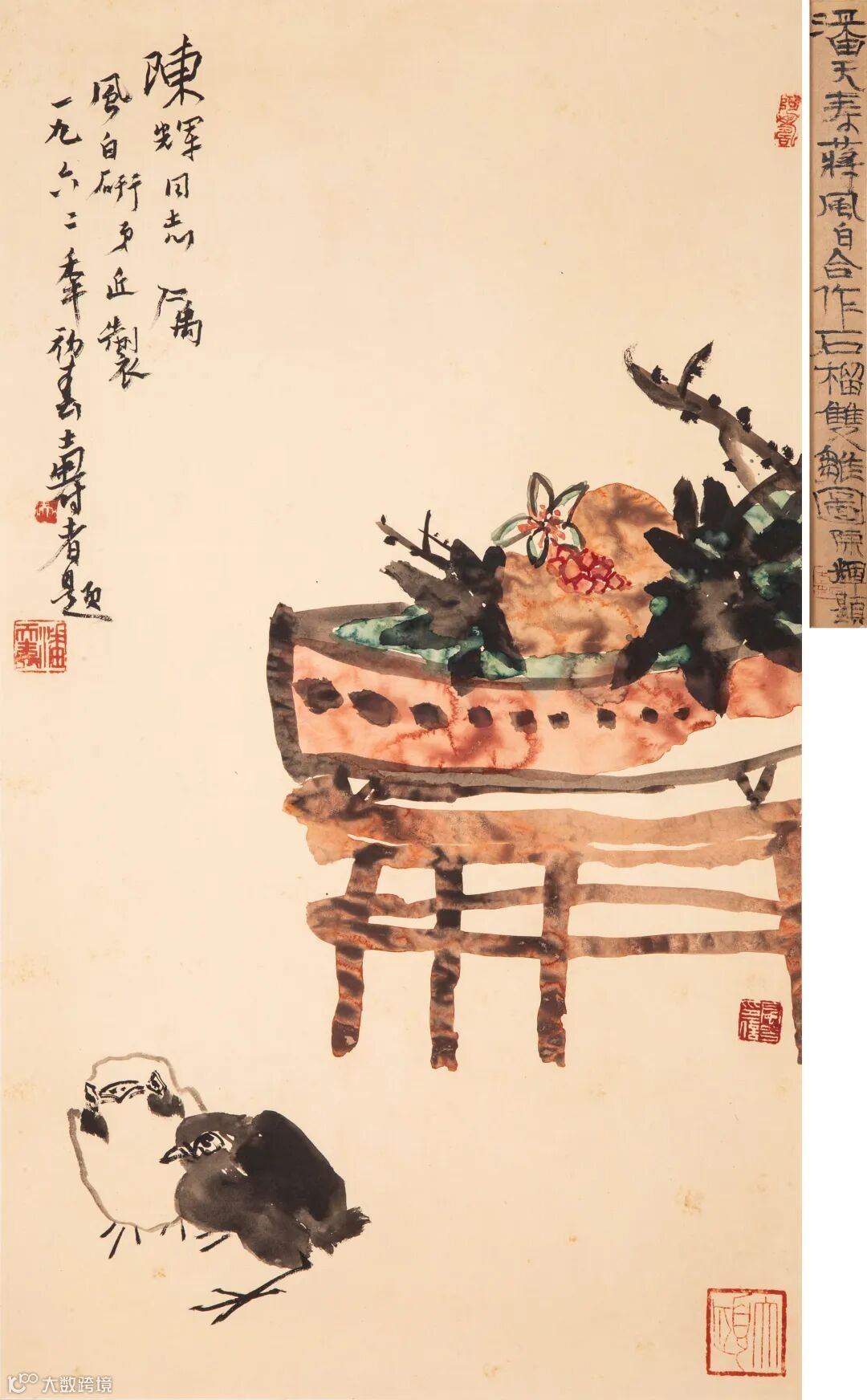 LOT0031 潘天寿、蒋风白(陈辉题) 石榴双雞图