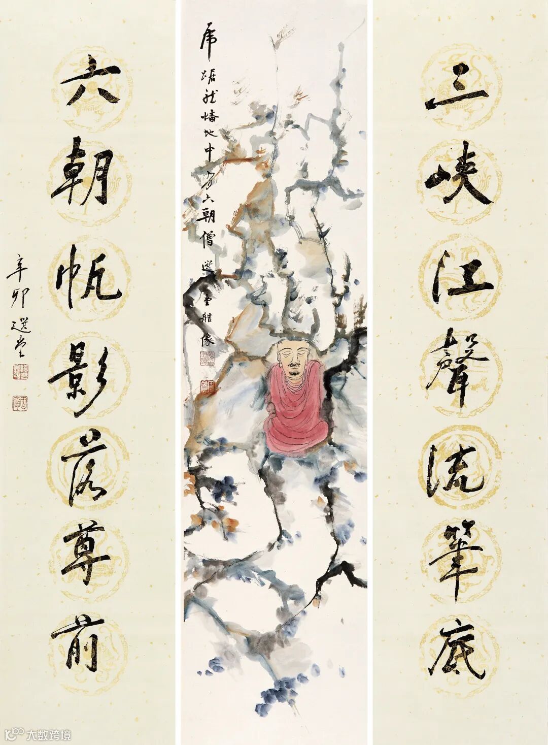 款识:辛卯选堂。虎踞龙盘地,中有六朝僧。选堂造像。