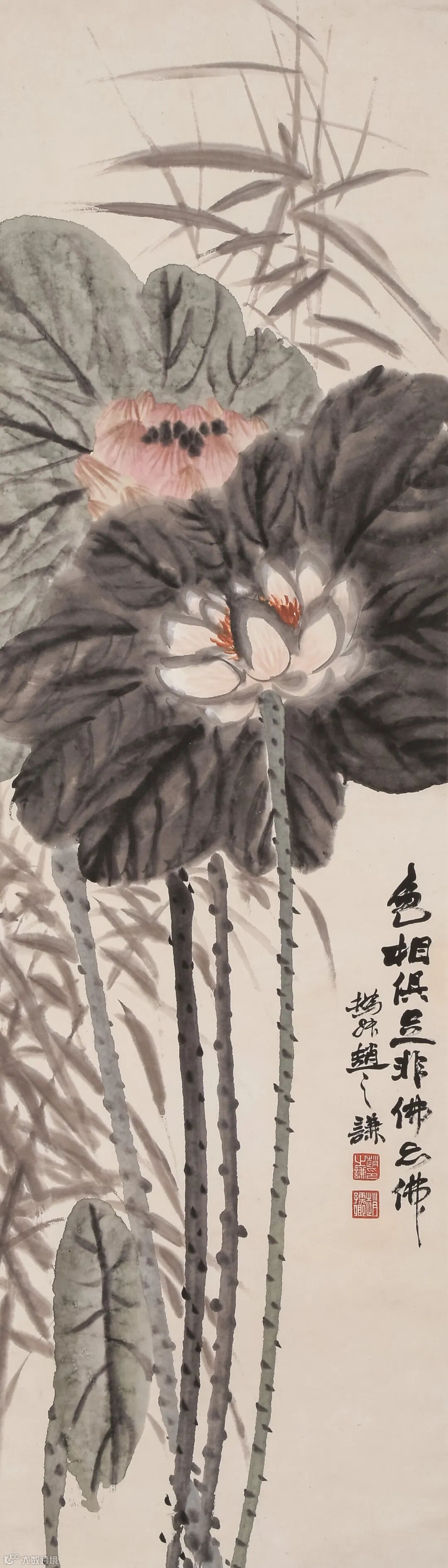 钤印:潘天寿(朱文)、大颐(朱文)、阿寿(朱文)、风白印信(白文)、金石之寿(朱文)