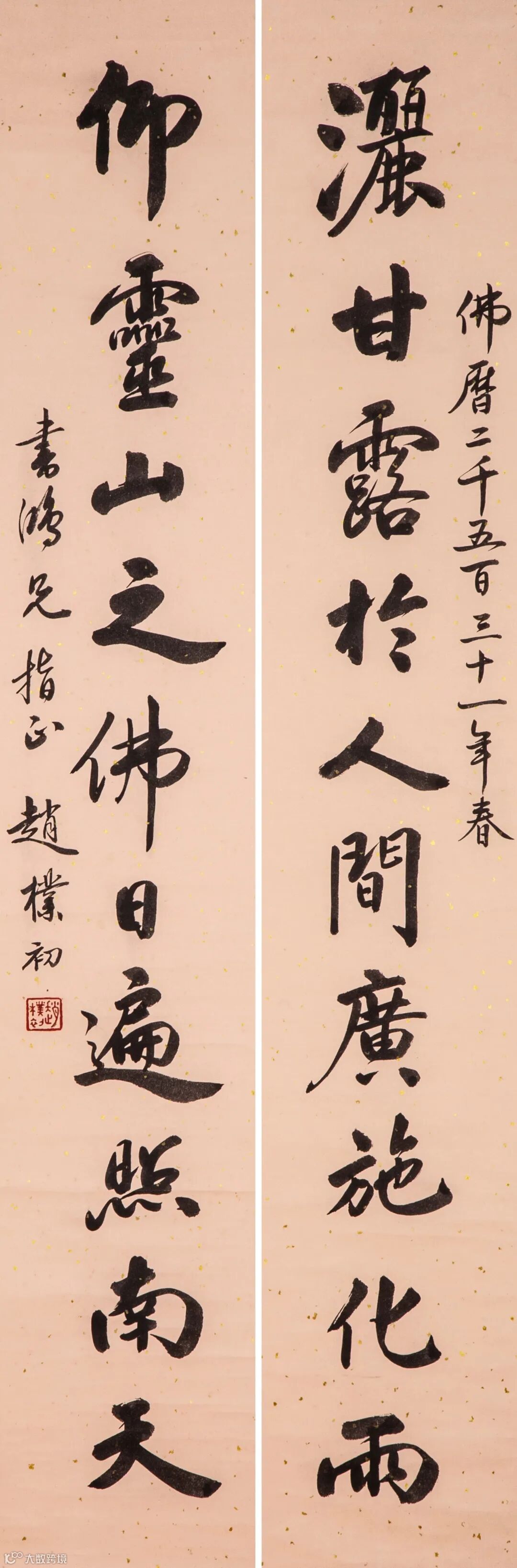 款识:佛历二千五百三十一年春,书鸿兄指正,赵朴初。