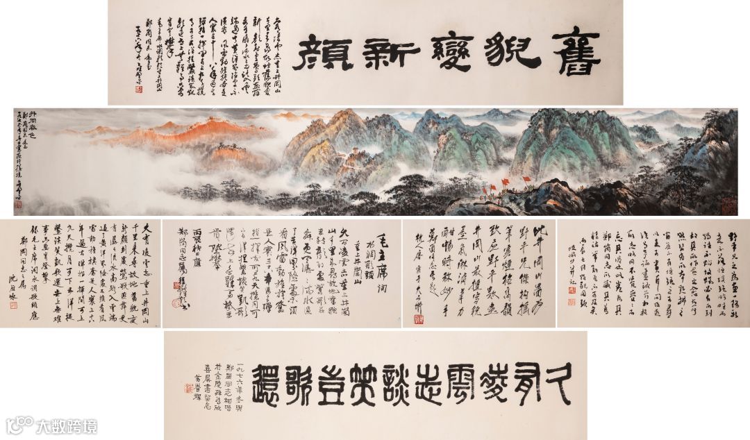 纸本 手卷 引首26×126cm;井岗春色26×176cm;题跋26×300cm