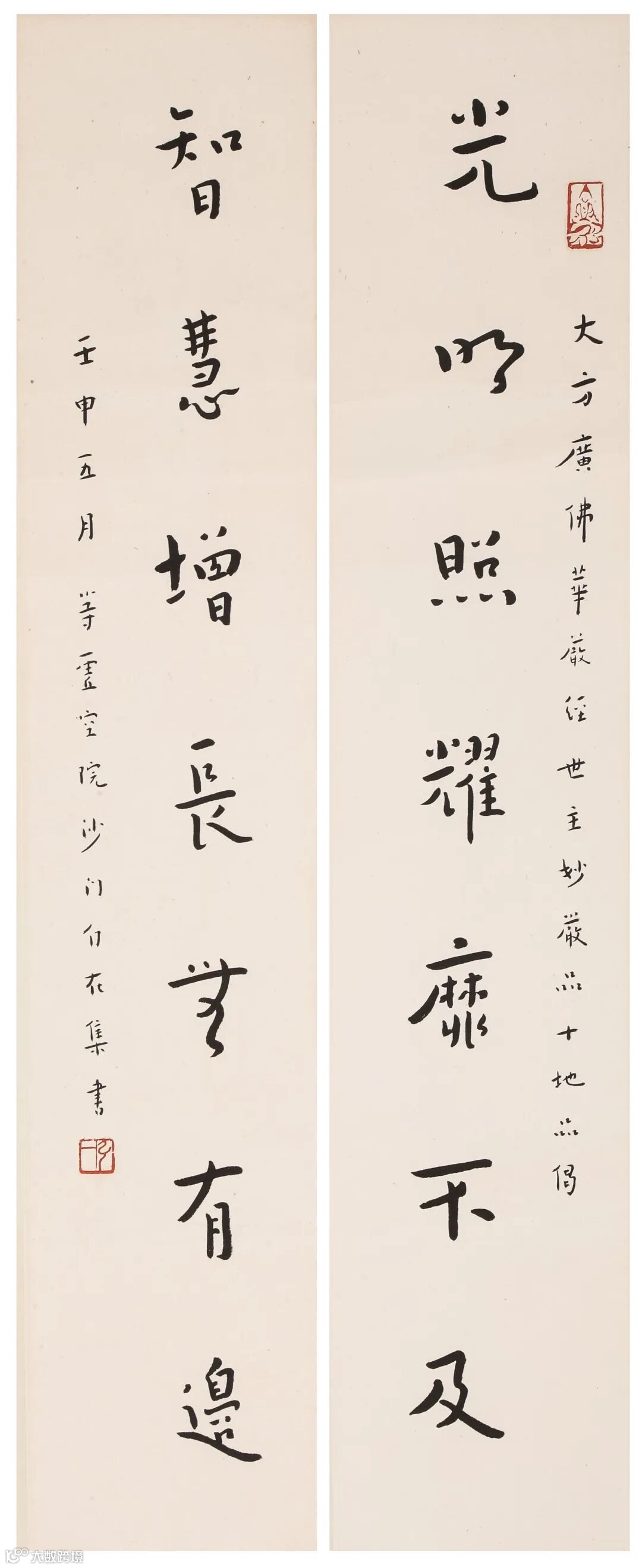 款识:大方广佛华严经世主妙严品十地品偈。壬申五月,等灵空院沙门自在集书。
