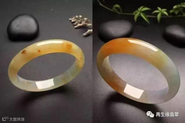 一般来说,翡翠绿色部分的种都不错,但非绿色部分就不行了,干瘪、不透彻,这就是行家所说的“龙到之处有水”。绿色部分种相同的两只手镯,如果底不同,那价格可能会相差数倍。