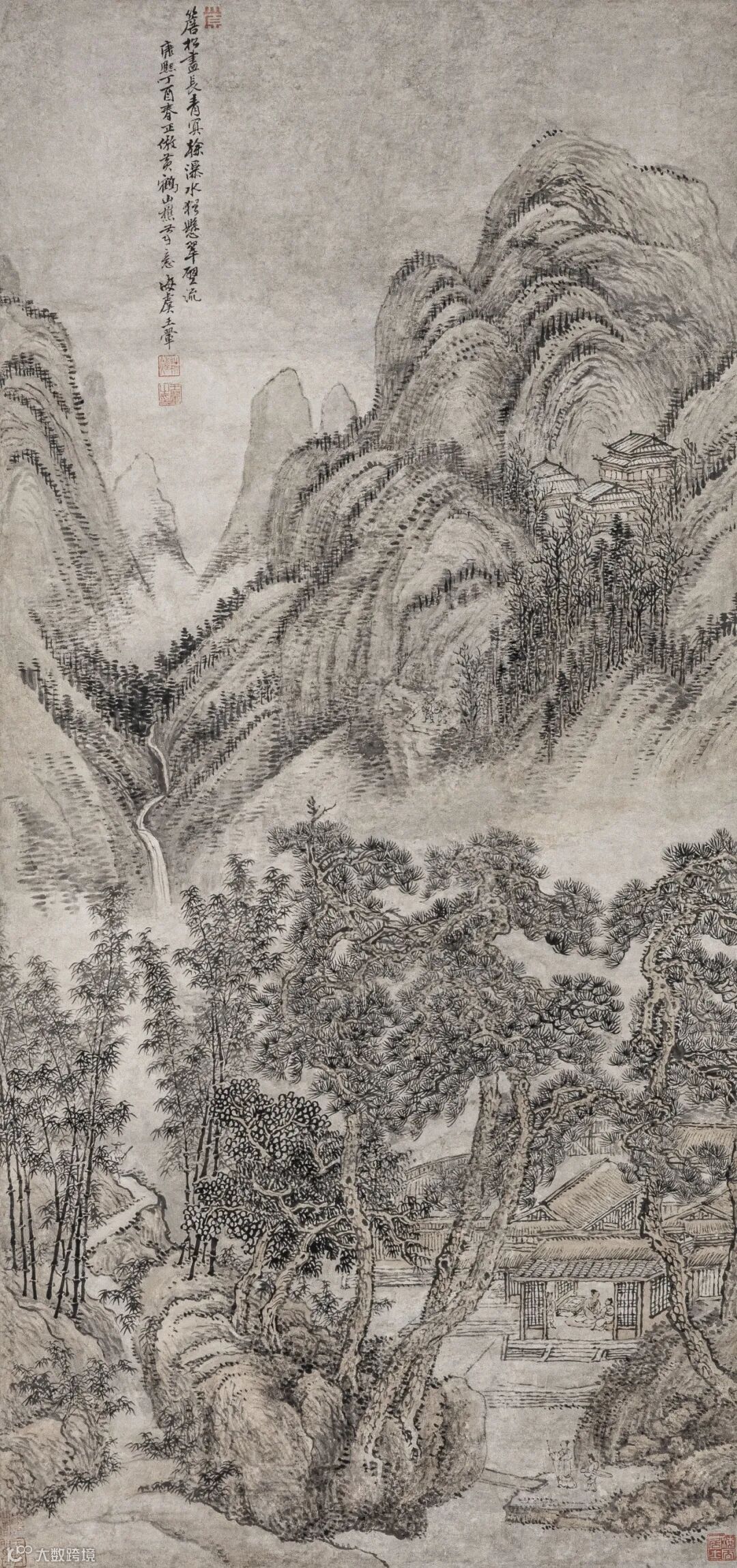 耕烟(朱文)、王翚之印(朱文)、太原(白文)、来青阁(朱文)、海天居士(朱白文)、天放闲人(朱文)