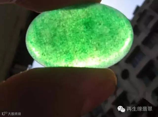 2、仿翡翠玻璃中常见气泡,现代工艺较好的仿翡翠玻璃的气泡虽小,用10倍放大镜配合手电照明也能看到,多呈粉绿色的小球状。