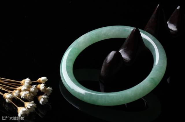 翡翠飘花一般有点状、丝带状、条带状的区分,这就构成了翡翠饰品的意境美。