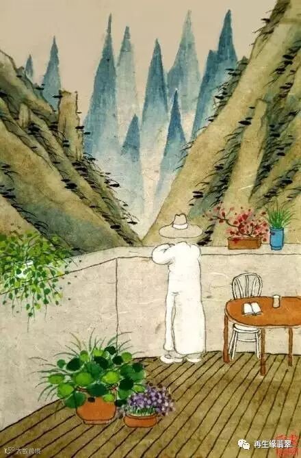 寥寥数笔,中国水墨风,古典山水背景。一位民国时期的长衫先生,手掬一束鲜花,或酣眠树下,或放舟山川间,或面朝花海独立,再佐以上面这些熨帖平实、率性豁达的诗作,沁人心脾。