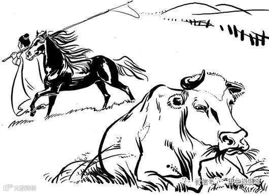 这个版本说,牛和马遇到风就会开心地走起来,牛喜欢顺风走,这样耕地省力;马喜欢逆风走,这样跑起来鬃毛飞扬,十分酷炫。因此同样的一阵风吹来,两兽会往相反的方向走去。