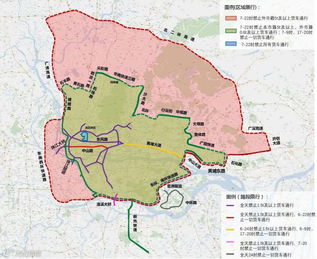 ✦在广州市行政区域内通行的货车除遵守本通告外,还须遵守本市其他限制货车通行的规定。