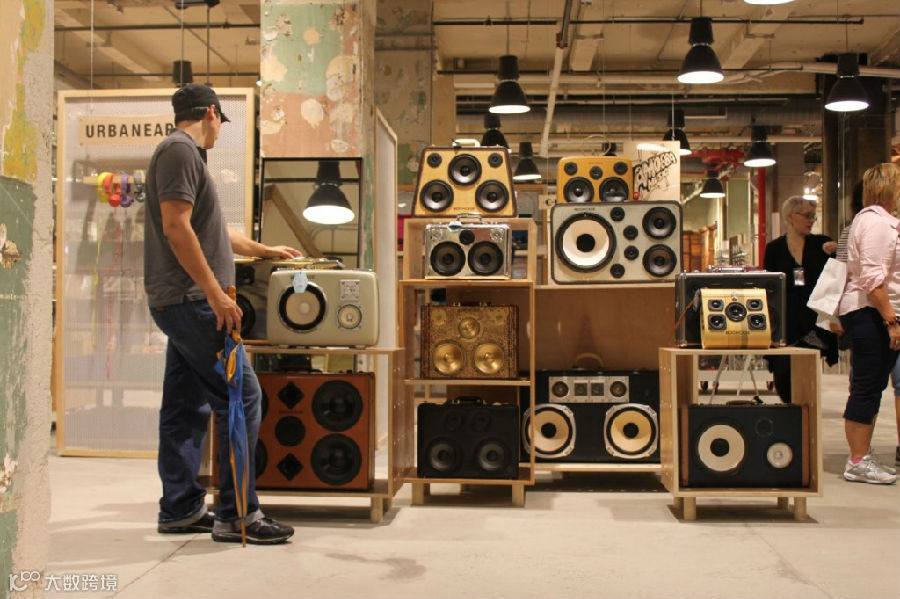 ▲音乐区,销售耳机、音箱、唱机以及其他音响设备-为配合怀旧风,这里配备了超过1000种黑胶唱片-由合作商、来自加州的唱片店Amoeba Music精选,其中400种老唱片只能在这里买到。