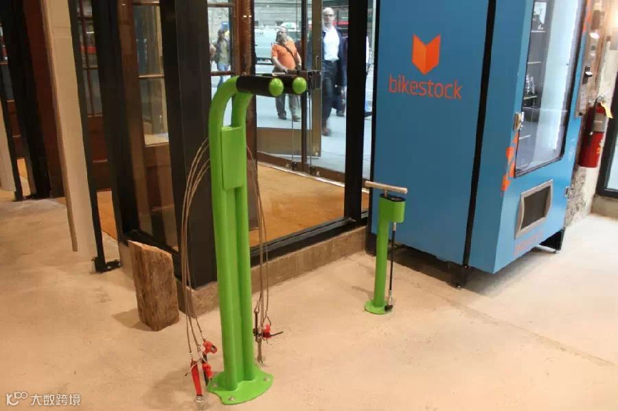 最后逛完店铺出门前,你还可以在这里修修自行车,打打气,自动售货机销售自行车零部件。