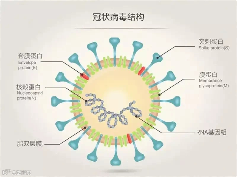 大家可以看到冠状病毒是由内部基因组核酸和外部蛋白组成的。核酸检测就是针对内部核酸进行检测,抗原检测是针对外部蛋白进行检测。