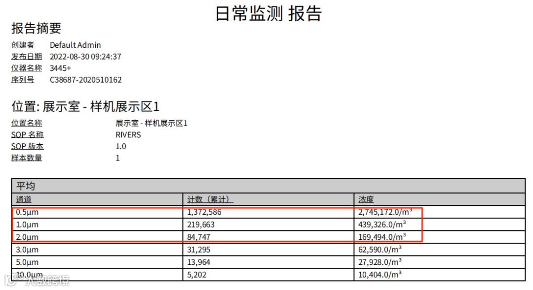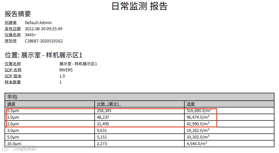 启动空气净化机10分钟后的展示室室内尘埃粒子数