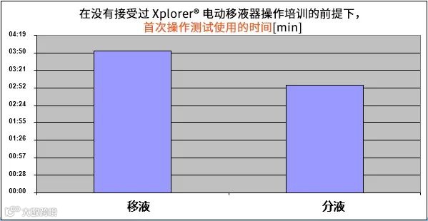 ▲ 没有接受过 Xplorer® 电动移液器操作培训的前提下,首次操作测试使用的时间