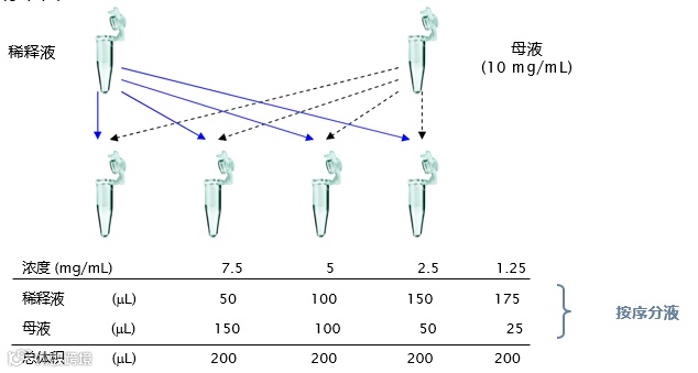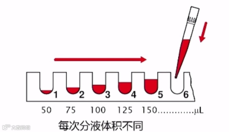 在这个序列浓度配置过程中,每次移取液体的体积都是不一样的。如果是手工移液,这个过程会相对繁琐,而电动移液器则可以轻松地解决这个问题。