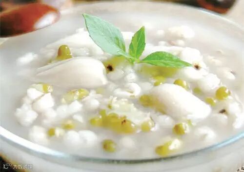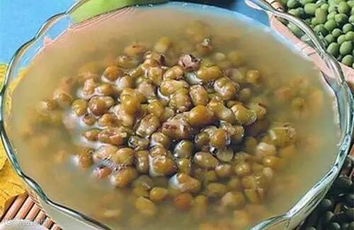 原料:绿豆半斤,山药4两,冰糖2大匙