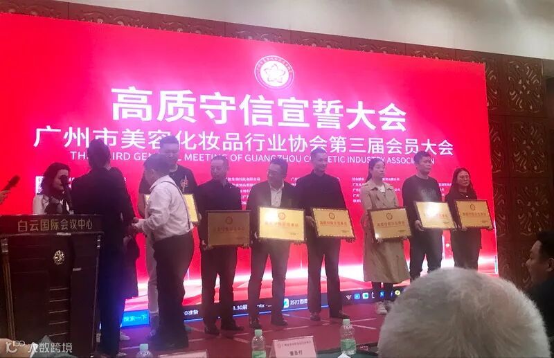 随后,大会进行了单位授牌,广州市白云莱茵化妆品厂等