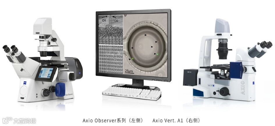 Axio Vert. A1(上图右侧)是蔡司常规研究级倒置显微镜,具有配置灵活,功能全面的特点。用户可以根据自己的需要,选配明场(BF)、相差(PH)、微分干涉(DIC)、荧光(FL)、霍夫曼(iHMC)、斜照明、暗场和偏光等多种观察方式,采用人体工学设计,且具有ECO节能省电的环保功能。