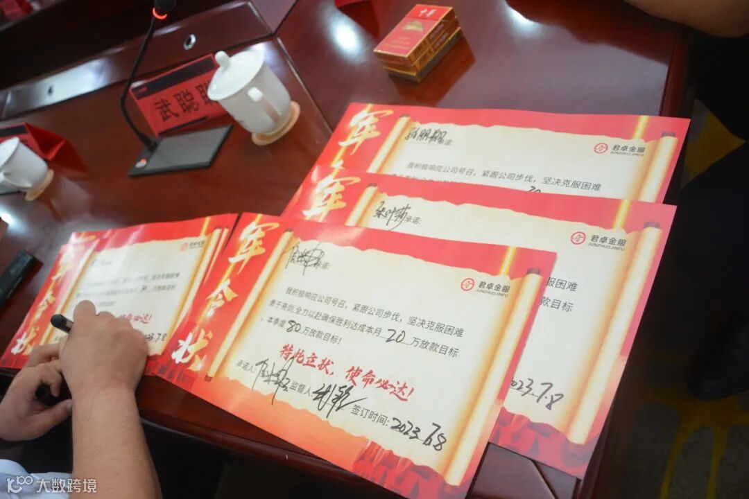 大会通过总结、嘉奖、分析等形式对上一阶段做了复盘。也为君卓下一阶段营销工作明确了方向。公司各部门成员逐一签署下一阶段的军令状,按照既定目标推进工作安排,不远万里永不言退。