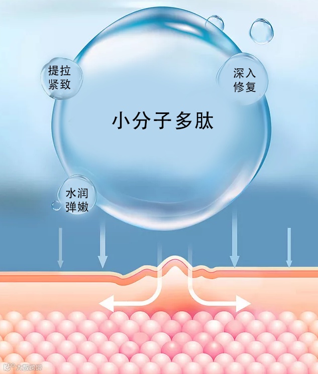 蕴含纳米小分子肽类(肌肽、二肽、三肽-1、乙酰基六肽-8、五肽-3)、胶原、多种植物萃取等,多肽生物透皮渗透,即时提升紧致肌肤,搭配复合氨基酸,它能直接到达真皮层纤维母细胞发挥作用,能够完整穿透上皮细胞,可与皮肤里层价金属离子发生螯合反应,阻止过多的二价金属离子与皮肤中的胶原蛋白发生交联作用,维持足够的胶原纤维和弹性纤维,塑造水嫩弹滑肌肤,淡化细纹,快速提拉肌肤,肌肤紧致尽显年轻态。
