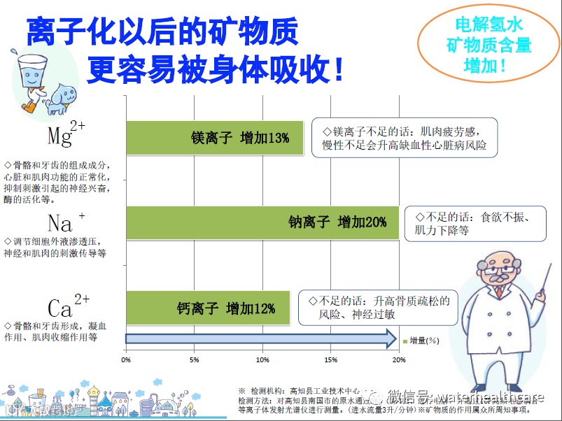 其实,电解氢水还有一个特点就是,水中的矿物质离子含量高于电解前的原水!
