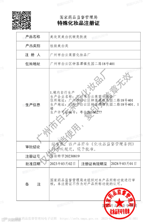 近日,莱茵化妆品厂又通过了一款特证产品——美攻芙美白抗皱亮肤液。至此,工厂共通过了六十多款特证(含多款双特证),包含美白全系列产品,不仅如此,我们仍然持续造血推陈出新,还有更多特证产品正在审批中。