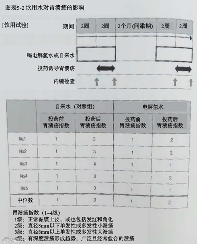 更进一步,他也想到,假如电解氢水果真如桦山繁所示具有抗氧化作用的话,那也应该能抑制氧化应激所引起的胃溃疡发病。如果靠电解氢水自身的抗氧化作用使pH值水平得以提高的话,那么,腺体区分泌出来的黏膜的保护功能也可能会增强,从而减少胃溃疡的发生机会。