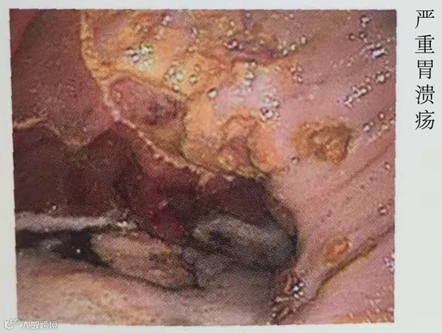 在这次实验中,投入药物前的马胃溃疡评分为1级(正常的黏膜上皮或也包括发红和角化),然后用药人为制造胃溃疡的发病。自来水组在用药两周后,胃溃疡评分为3〜4级(中间值为3),而电解氢水组却得出了1〜2级(中间值为2)(见图表5-2)这样的结果。顺带提一下,2级是指“直径8mm以下单发性或多发性小溃疡”,3级是指“直径8mm以上单发性或多发性大溃疡”,4级是指“有深度溃疡形成趋势、广泛且屡次愈合的溃疡”(见照片)