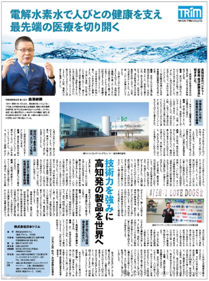 《高知新闻》用电解氢水支撑人们的健康,开创最尖端医疗
