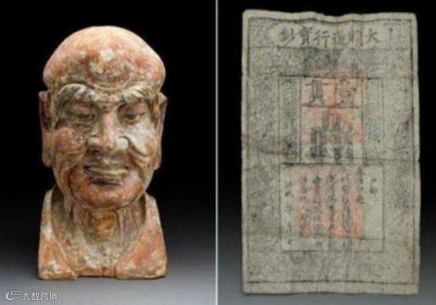 明朝是中国封建时代最后一个汉人王朝,这一时期商品经济得到很大发展,便携易带的纸币逐渐取代金银实物在社会上广泛流通起来。在2016年,墨尔本的一个海外拍卖会上,就有一个精致的明代木雕。表面上看去是一个假人头,但实际上是一个古代“存钱罐”,里面就存放着600年前的明朝纸币——通行宝钞。