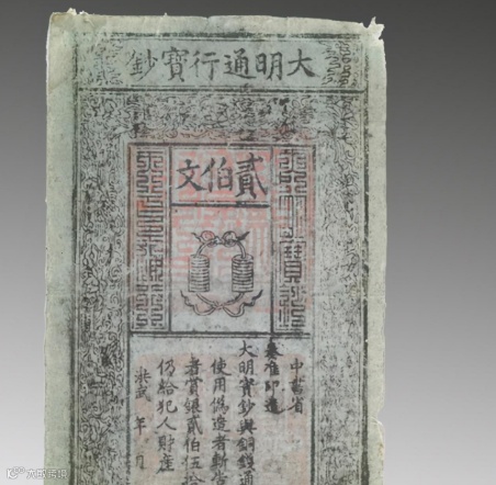 由于常年的战乱,国家的经济遭受严重创伤,朱元璋与其智囊团力图在经济方面下功夫,很快就颁布了新的钞法,并派专人建立了钞纸局、印钞局,以及宝钞库、行用库,被称为“两局”、“两库”。仅仅一年后,大明宝钞便正式问世。该宝钞采用特定的桑树作为原材料,外观款式上看上去与前朝元所发行的纸币相似。