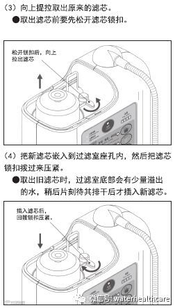 方法是滑开主机右下角的盖板,可看到标有1、2、3、4的小键盘开关,把第4个键盘拨上去后,查看操作面板上一共亮了几盏灯(7个制水档按钮指示灯和1个电源按钮指示灯一共8盏),每盏灯表示1.5吨用水,8盏灯全亮的话就表示这支精滤芯12吨的过滤使命结束了,此时就需要购买更换新滤芯了。这个功能平时几乎无需用到,因为滤芯的过滤流量和使用时间都是自动累计的,只要不长时间拔下电源插头或切断总闸,它就在自动工作,一旦时间满了12个月或流量到了12吨后,主机操作面板左上角的“交换滤芯指示灯”就会自动亮红灯提示,同时也会发出短暂报警时进行提示。此时只要按一下复位开关即可停止报警提示,流量和时间数据清零并重新开始累计。在更换滤芯并冲洗滤芯5分钟后,需要按复位开关一次以便让水机正常累计数据。