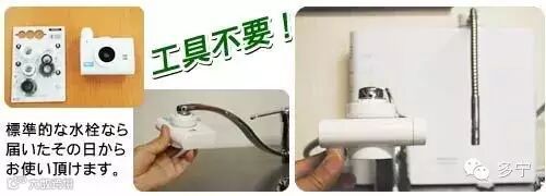只要您府上所用的是标准水龙头,无需工具就能连接安装!(注:日本自来水可以直饮,无需加装前置过滤器)