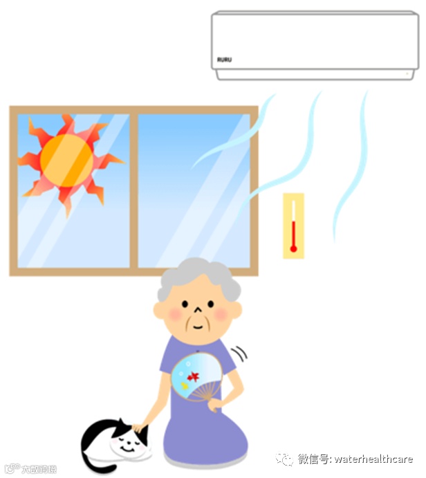 夏季不开空调或室内通风不良的时候,室内气温高,容易出汗,从而容易出现脱水。