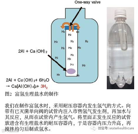 水溶液的制作一般采用鼓泡溶解氢气的方式、电解方式、利用镁和水的化学反应生成氢气的方式等(图2)。氢气溶解度约为1.6ppm,但一般销售的氢水的浓度却千差万别,塑料瓶包装会泄露氢气,所以一般都是铝罐包装。
