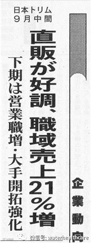 根据日本多宁(本社位于大阪市北区,社长森泽绅胜)披露的18财年半年报,以职域销售渠道为主的整水器直销业务持续向好,营业收入同比增加13.8%达至79亿日元水平。利润也录得同步增长,营业利润同比增加37.3%达至13亿7500万日元,税前利润同比增加24.3%至13亿3000万日元,净利润同比增加24.4%至8亿2700万日元。并且,对全年业绩预测也进行了上调(参阅另篇报道)。下半财年,该公司计划增加销售职人手,同时加大力度开拓大型企业渠道的整水器产品演示推介活动。
