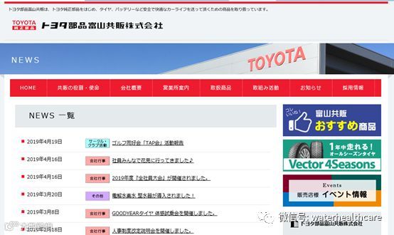 丰田部品富山共贩株式会社(富山县内丰田销售店与丰田汽车共同出资于1984年成立的一家综合销售公司)官网3月20日发布了一篇该公司引进电解水素水整水器的消息。翻译过来见下方。