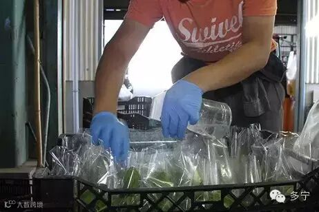 保鲜膜中的嫩叶菜在封装前还要喷水以防止干燥枯萎。
