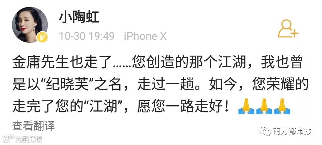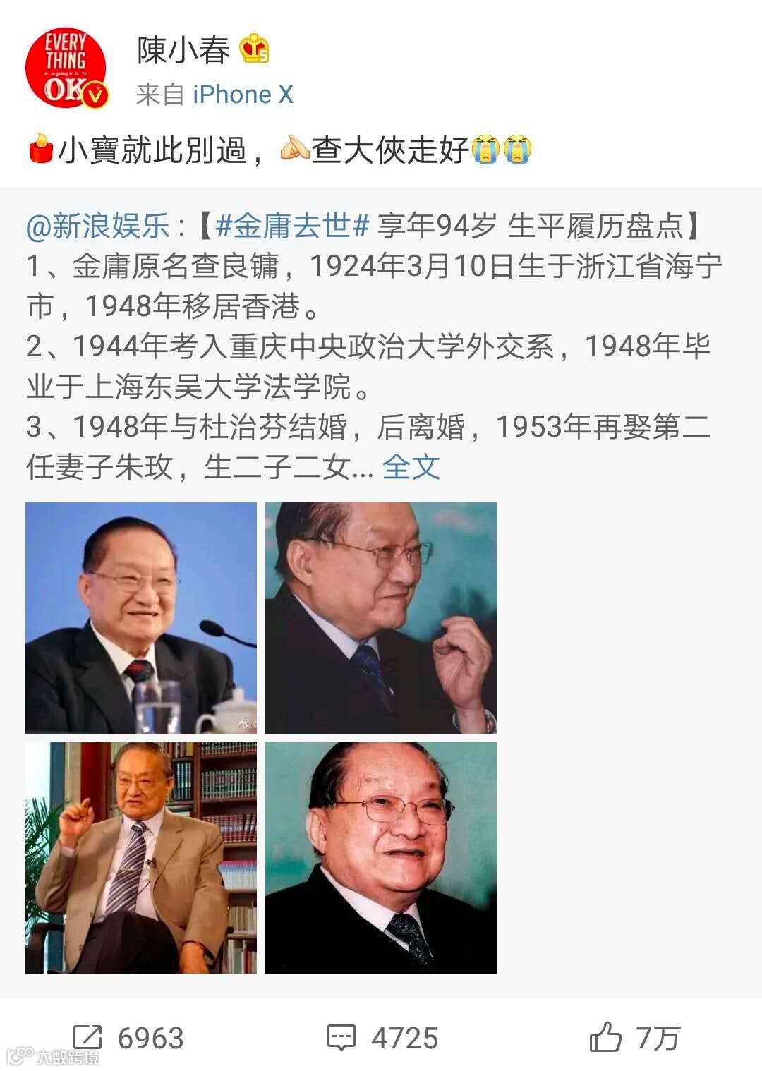 2018年10月30日,武侠小说泰斗金庸先生逝世,享年94岁。