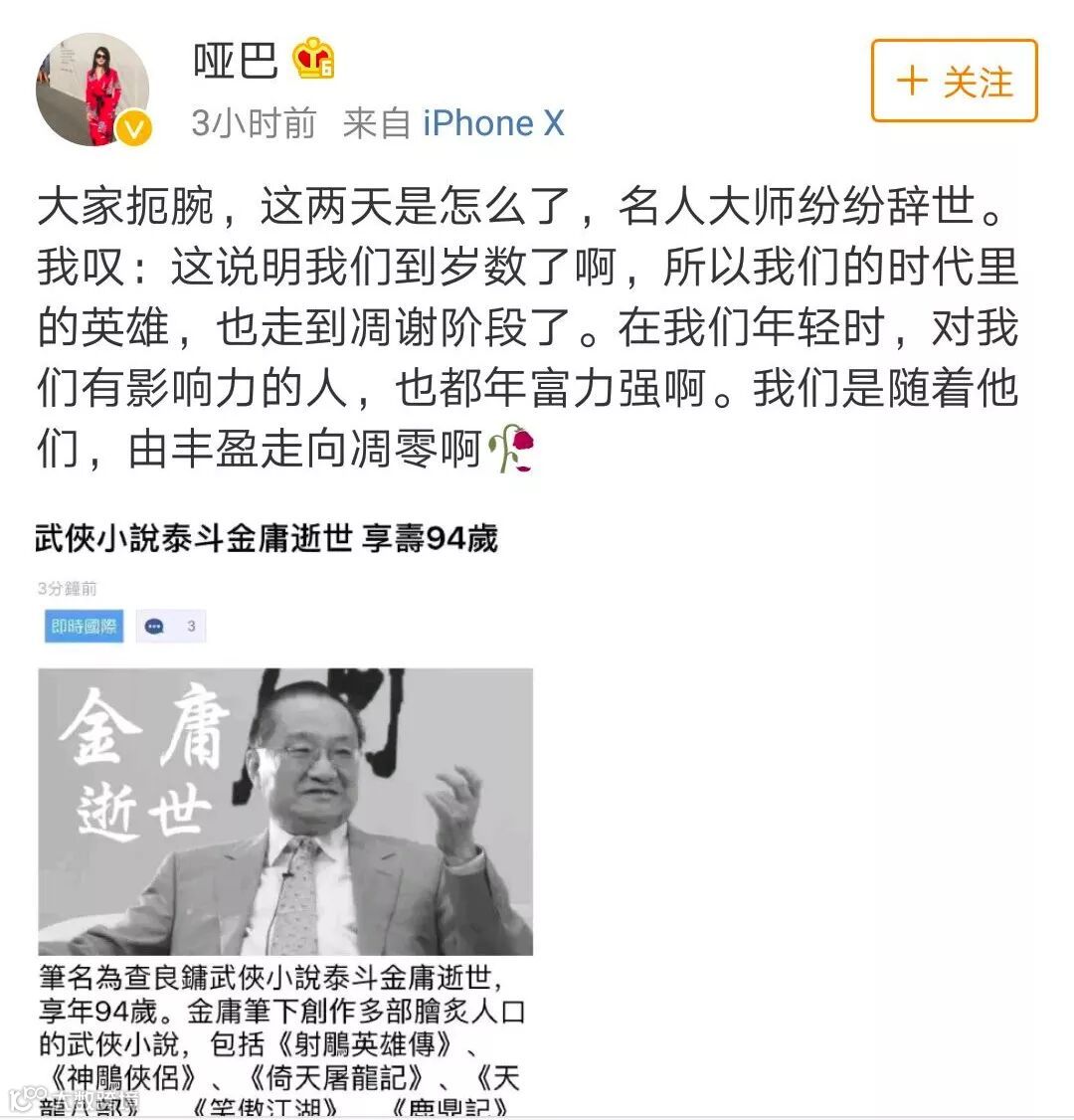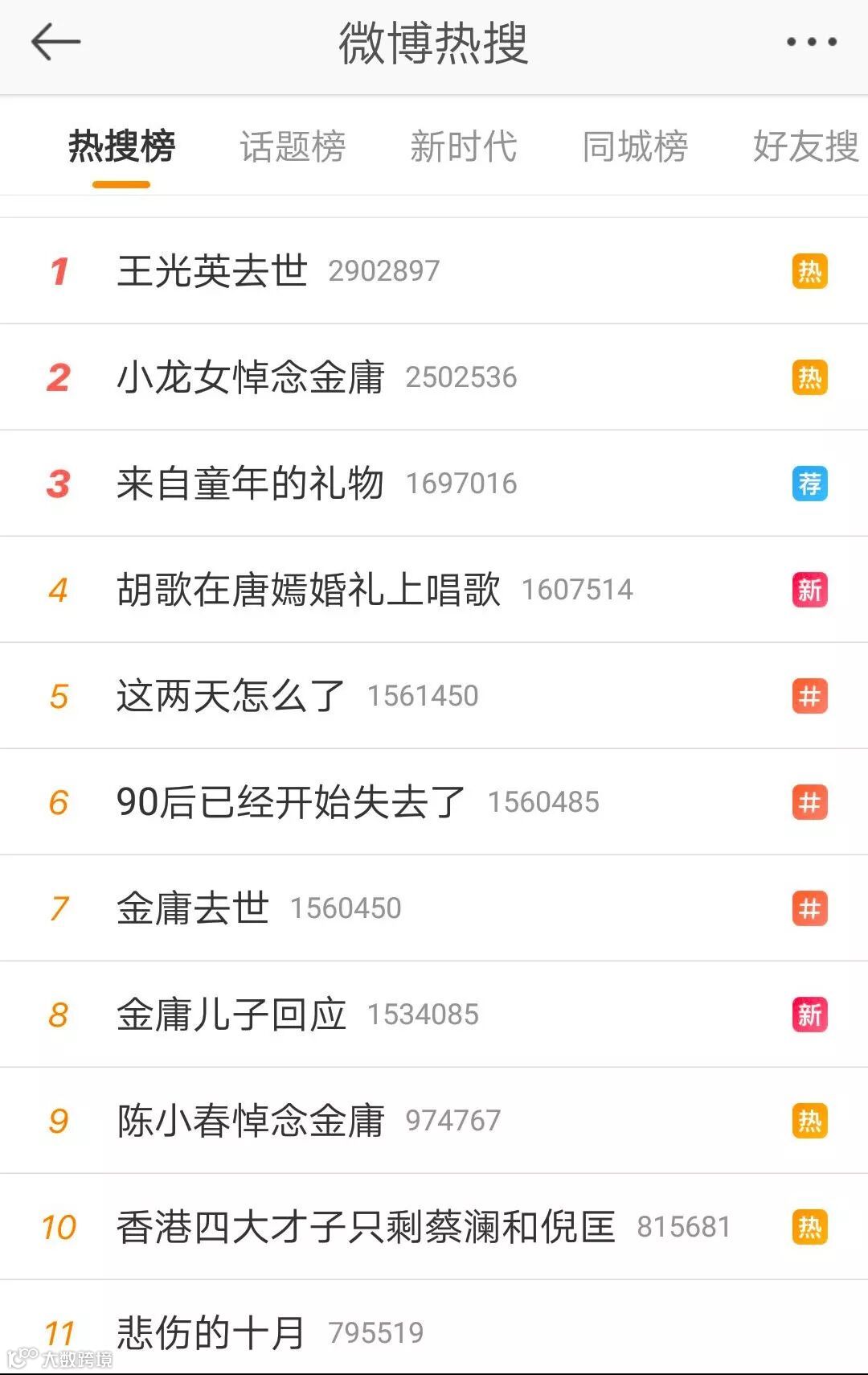导读:金庸去世后,突然间,被“90后已经开始失去了”刷屏,而网友的留言也让人看哭...…