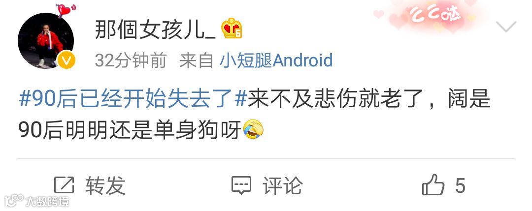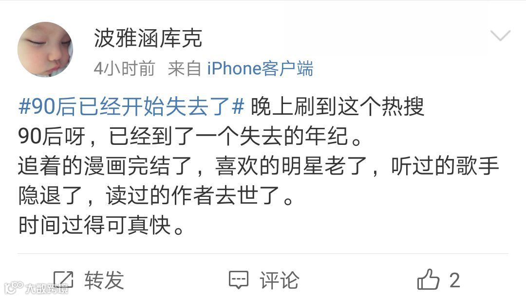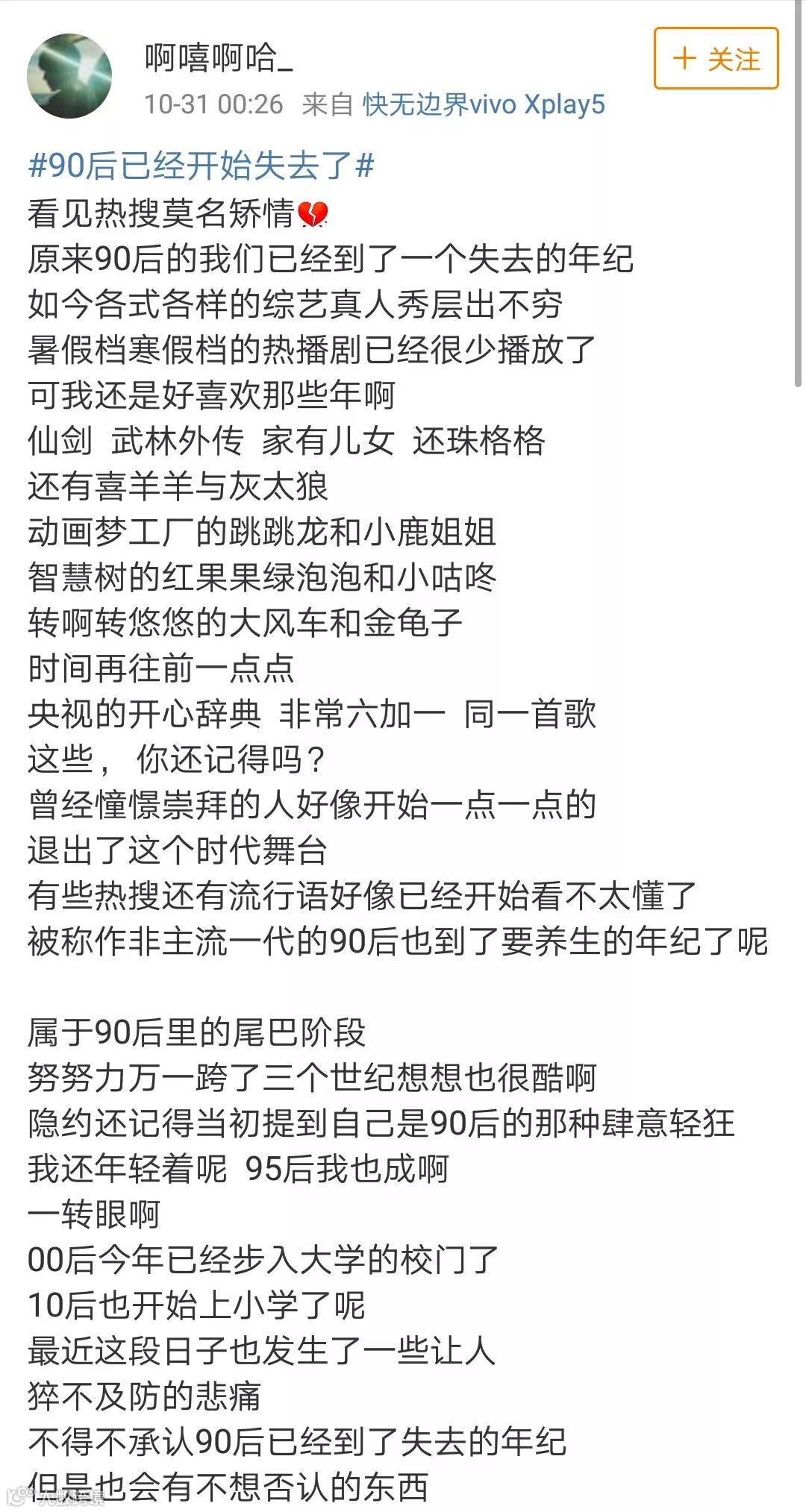 而昨晚,“90后已经开始失去了”的话题也突然冲上微博热搜榜↓↓↓
