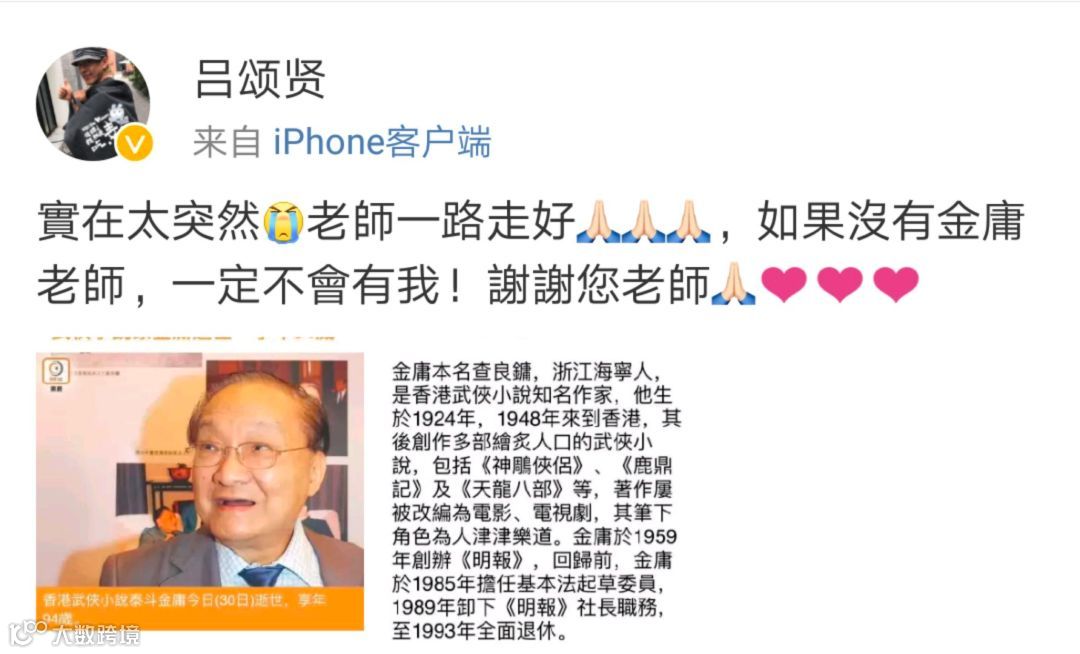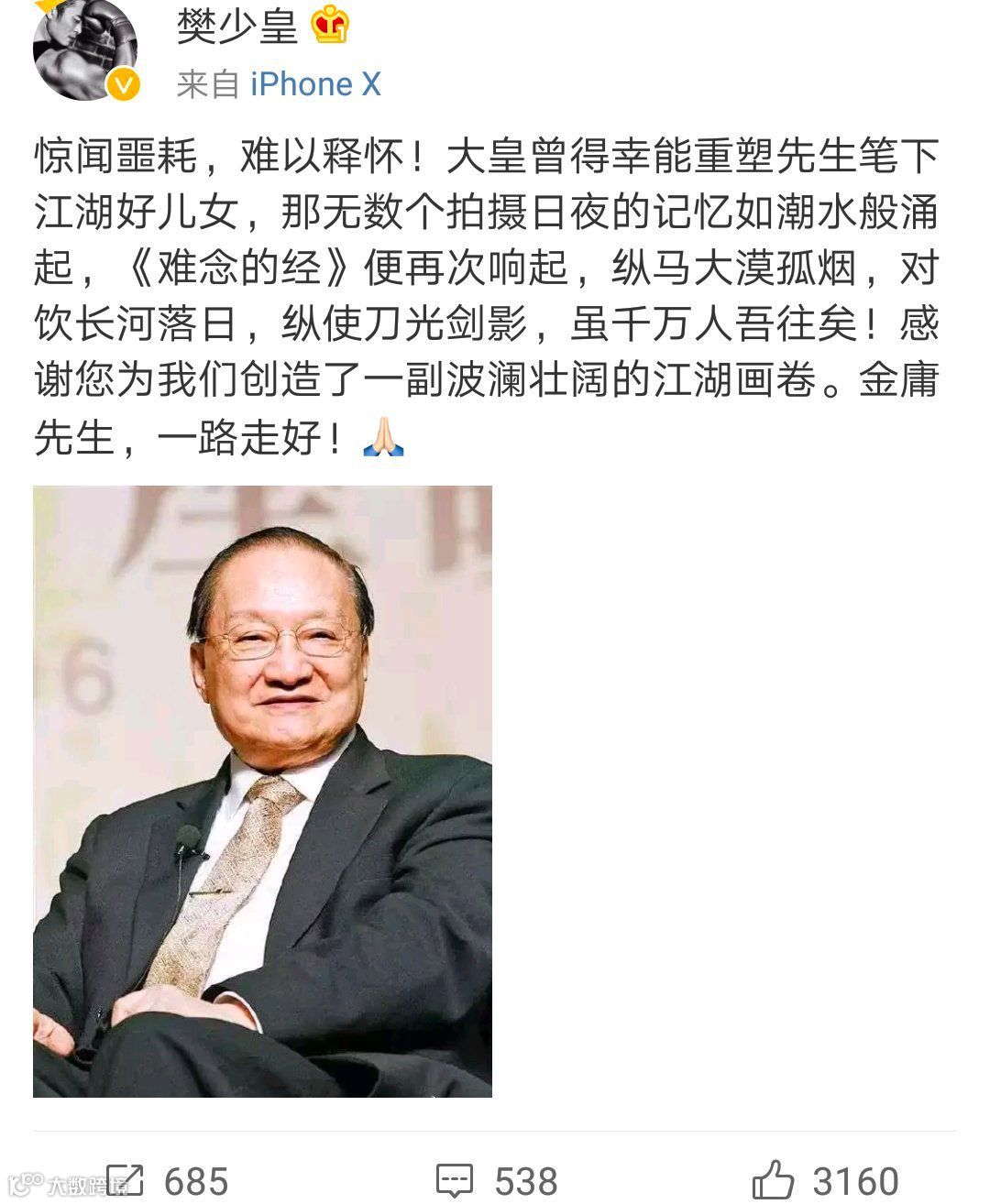 对于武侠迷来说,武侠小说泰斗查良镛(金庸)先生病逝,这个消息让人心碎。