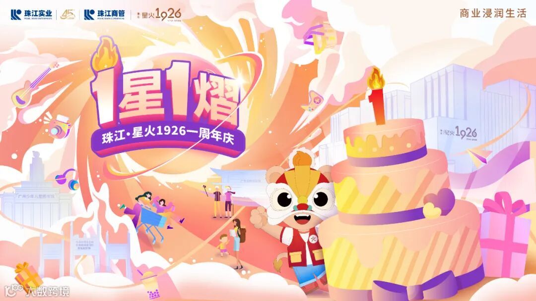 2024年8月23日,珠江实业集团旗下珠江商管主题型商业项目珠江·星火1926“1星1熠”周年主题活动精彩启动,这座极具岭南特色的老城商业新地标迎来了一周岁生日,在接下来的周年庆活动期间,项目将开启周年狂欢大party,举办巨型蛋糕岛甜蜜互动、星熠奇妙夜音乐派对、星仔大巡游、周年蛋糕工坊等活动,还推出市民喜闻乐见的集章打卡、专属消费折扣、消费满额赠礼等促销活动。