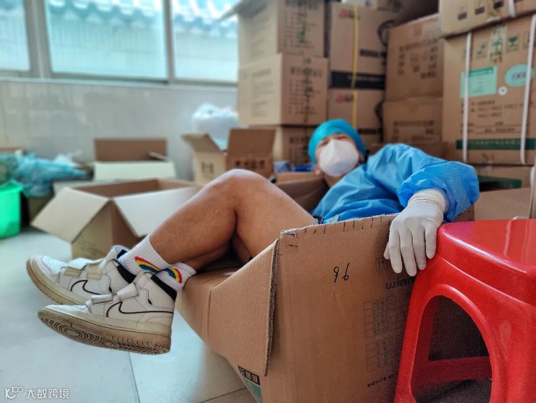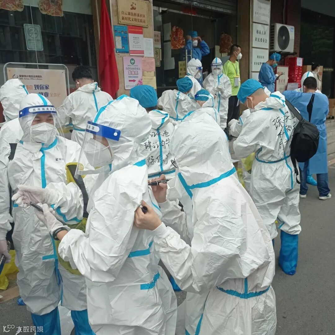 转战大冈村后,为了更快熟悉适应新的工作任务,突击队全员上阵。涉疫的城中村的环境并不似城区,他们还需顶着炎热的天气穿上厚重的防护服,化身“大白”奔跑在榕溪社区楼栋之间。突击队员们穿梭在握手楼林立的城中村中配送物资、收运垃圾,一户户扫楼排查700余人次人员信息……日以继夜的高强度的工作,累到靠在纸箱边上睡上几分钟,再继续上阵,支撑他们的是战胜疫情的信念和决心!艰难方显勇毅,抗疫呼唤担当,入驻白云区管控区这12天,不舍昼夜,脚步不歇,越是形势严峻,越要保持战略定力,越是山高路险,越要万众齐心!