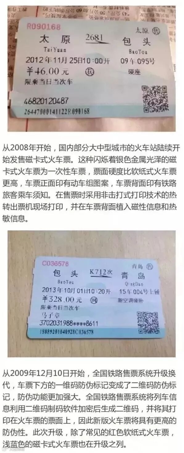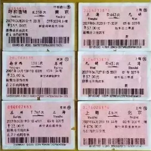 1997年,“纸板票”被“软纸票”取代,淡粉色的车票上印有一维码。2009年12月10日起,软纸车票的一维条码改为二维条码防伪系统。